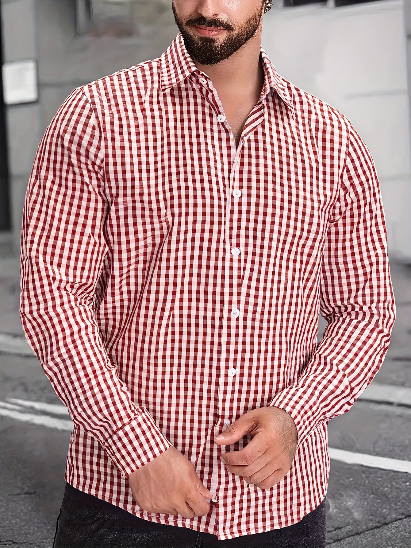 Elson OBM Men's Classic Plaid Button-Up Shirt - Long Sleeve Formal and Casual Top, Non-Stretch Fabric, Front Button Closure, Turn-Down Collar, Office, Wedding, Party Attire - Ideal Gift for Men, Office Wear, Fashion Design, Durable Construction