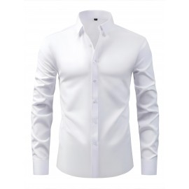 Men'S Polyester Casual Dress Shirt - Solid Color, Button-Up, Lapel Collar, Moderate Stretch, Comfortable Design for All Seasons, 120g/㎡, Casual Wear|Modern Casual Shirt|Sleek Appearance