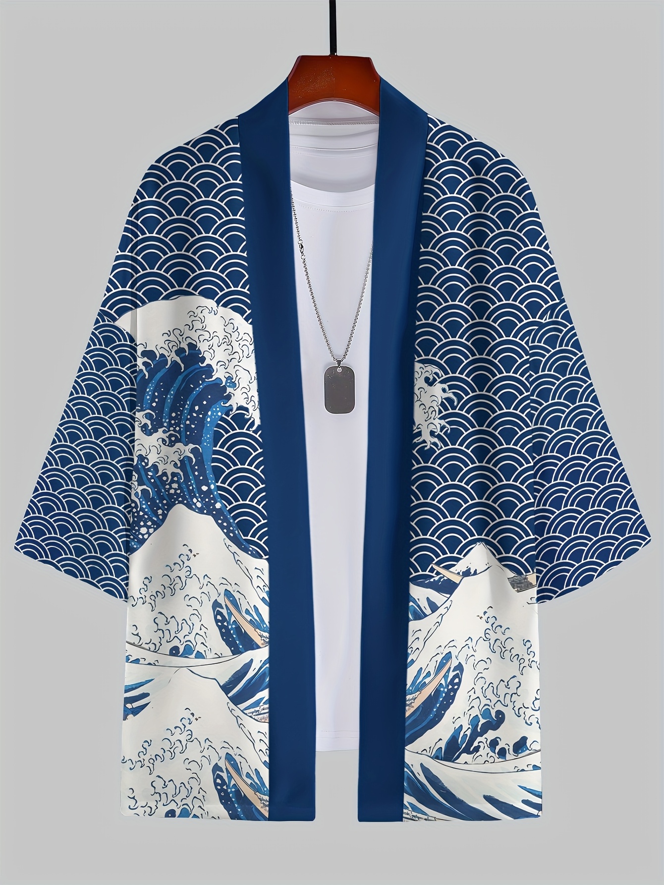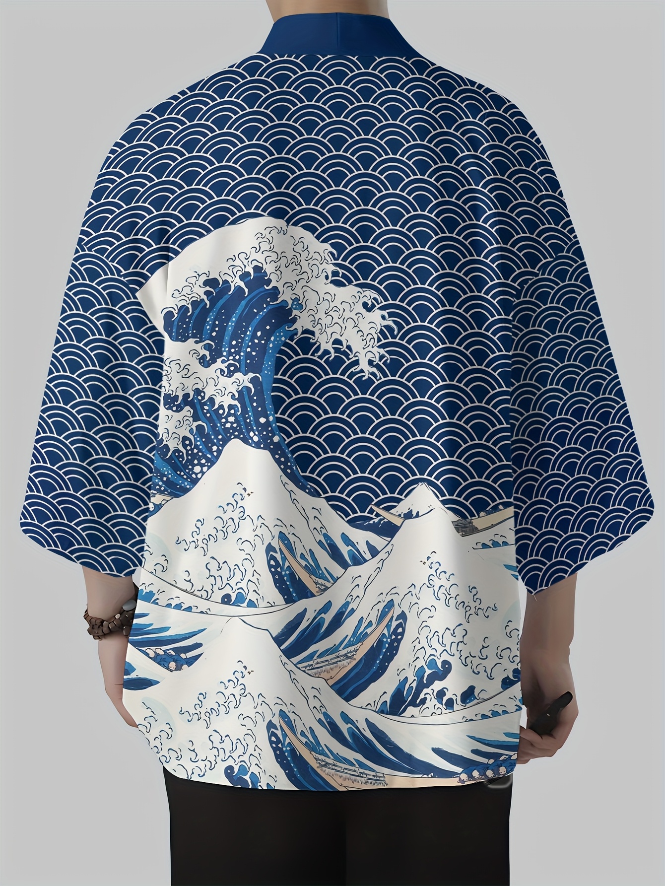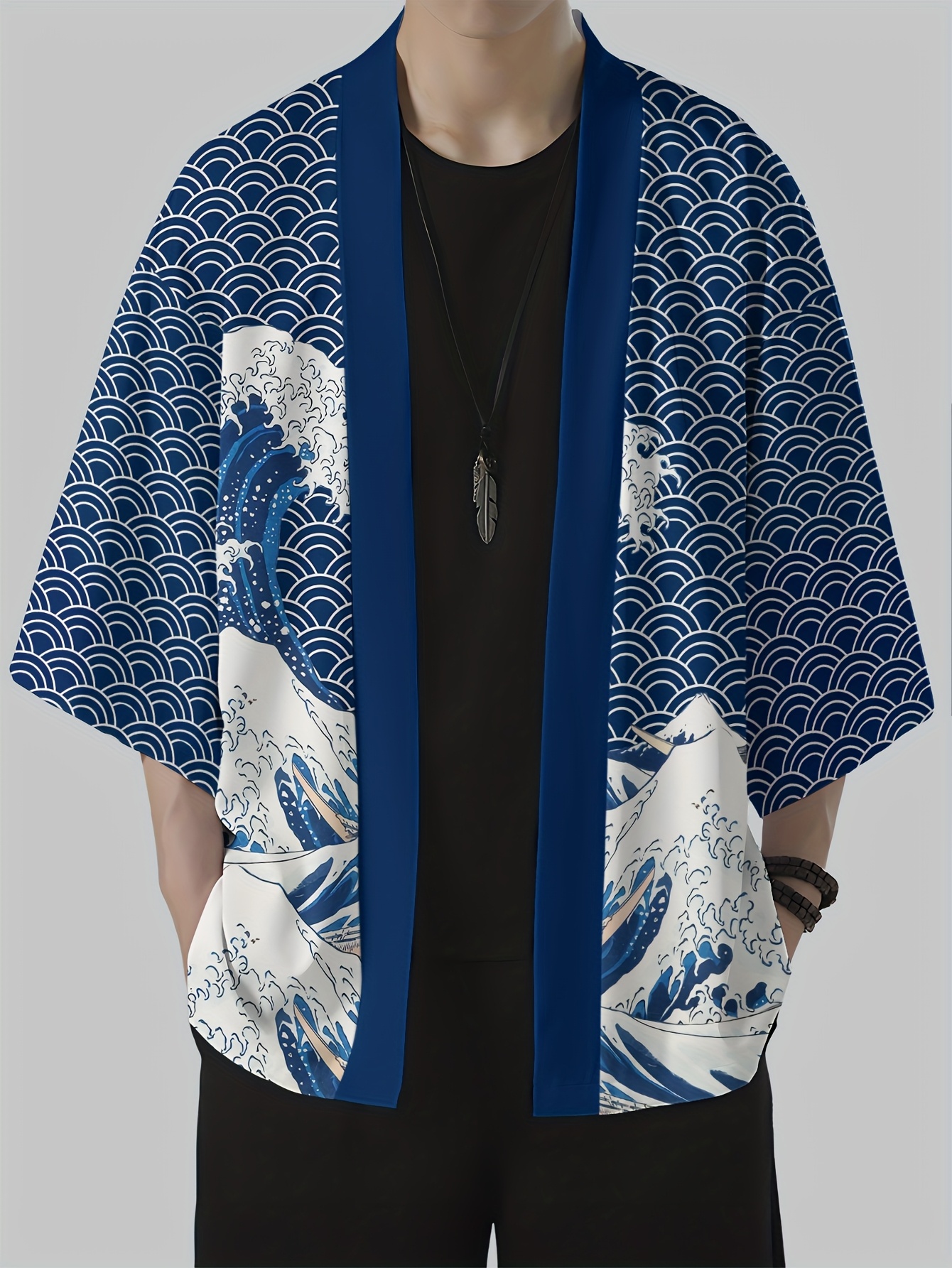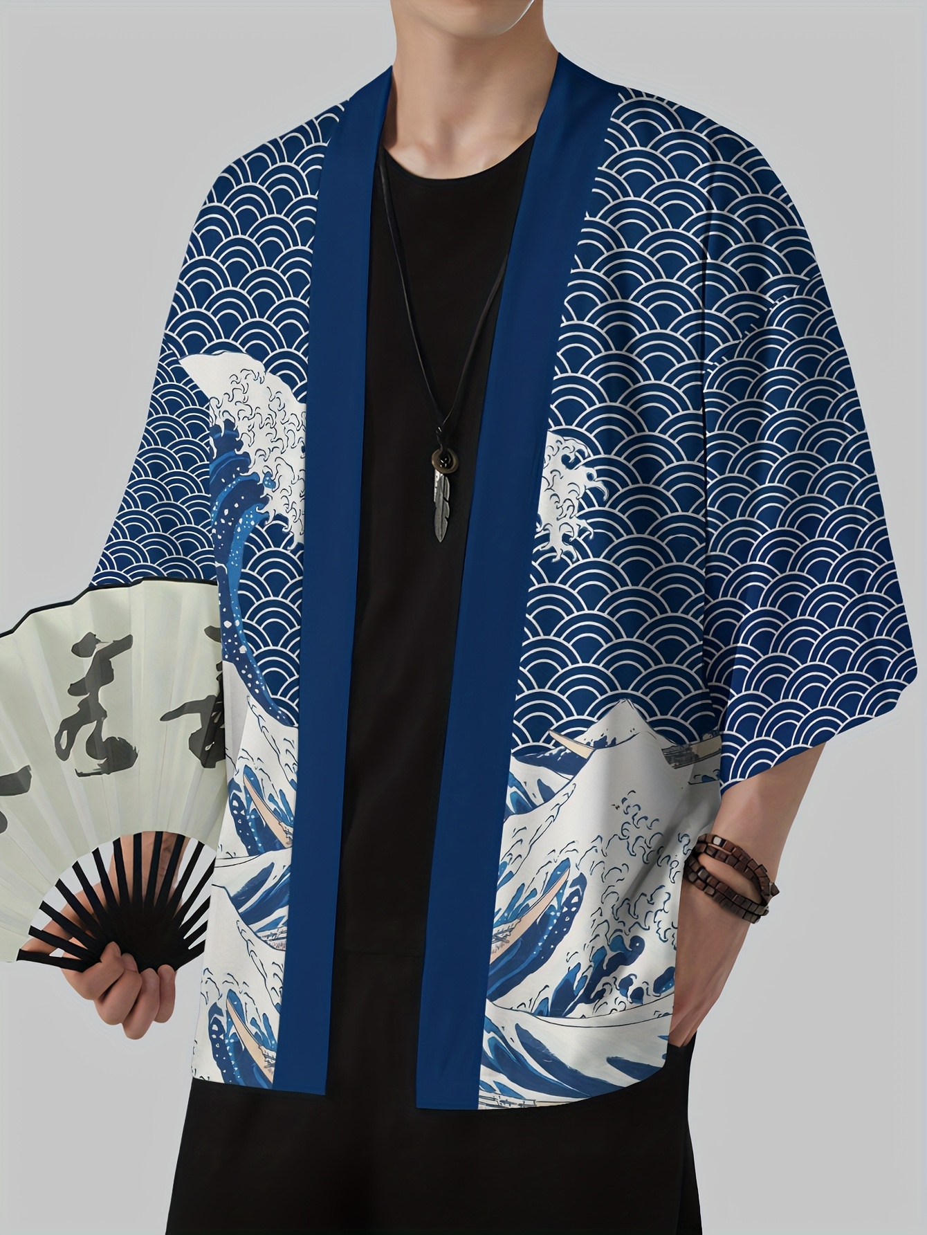 Men's Japanese Kimono Robe - Casual Samurai Beachwear with Breathable Polyester, Lightweight & Machine Washable, Multicolor Digital Print, Loose Fit Open Front Design for Summer Outdoor Leisure, Beach Kimono, Leisure Wear, Respirable Fabric