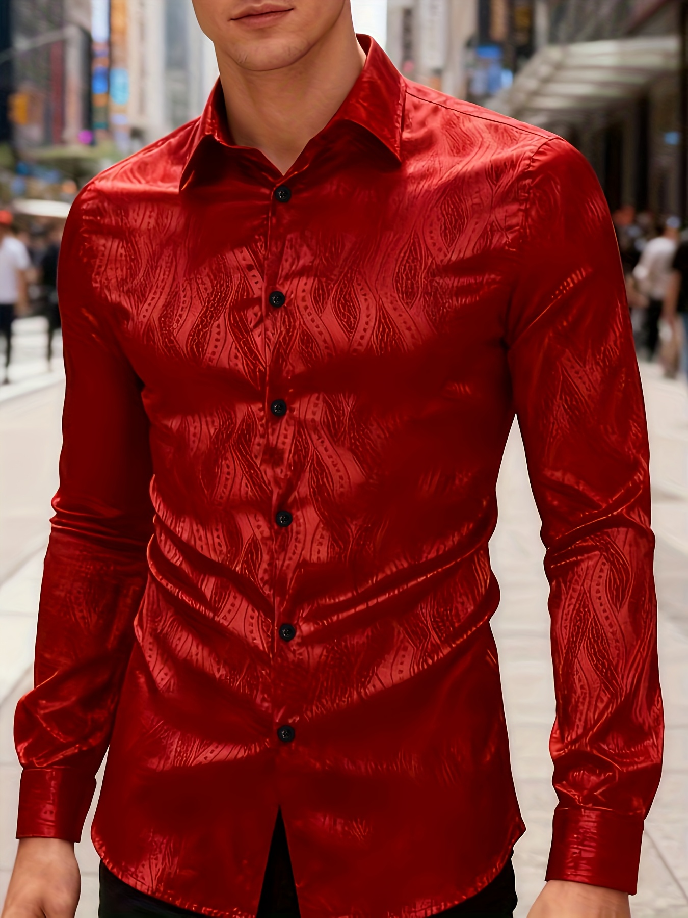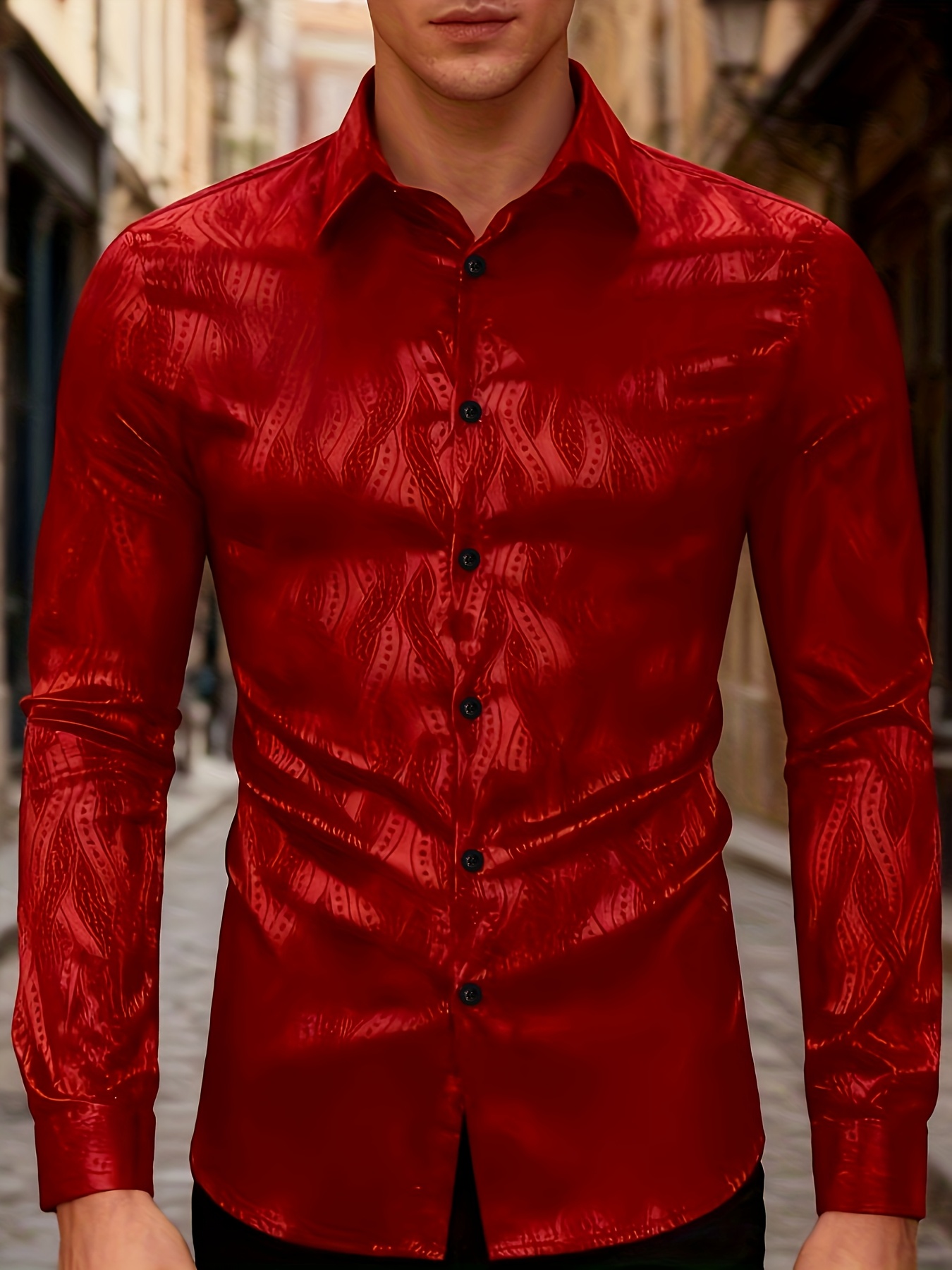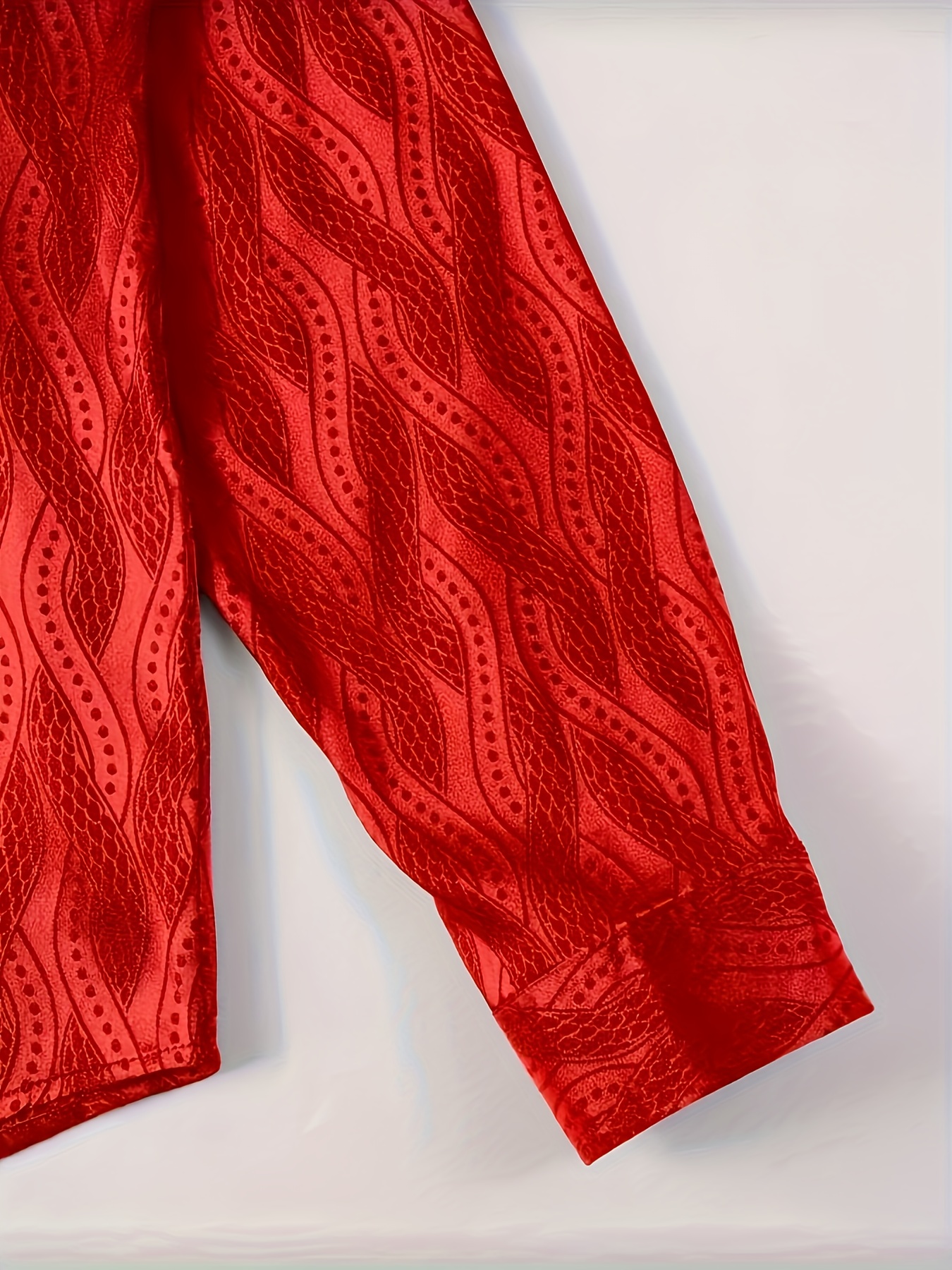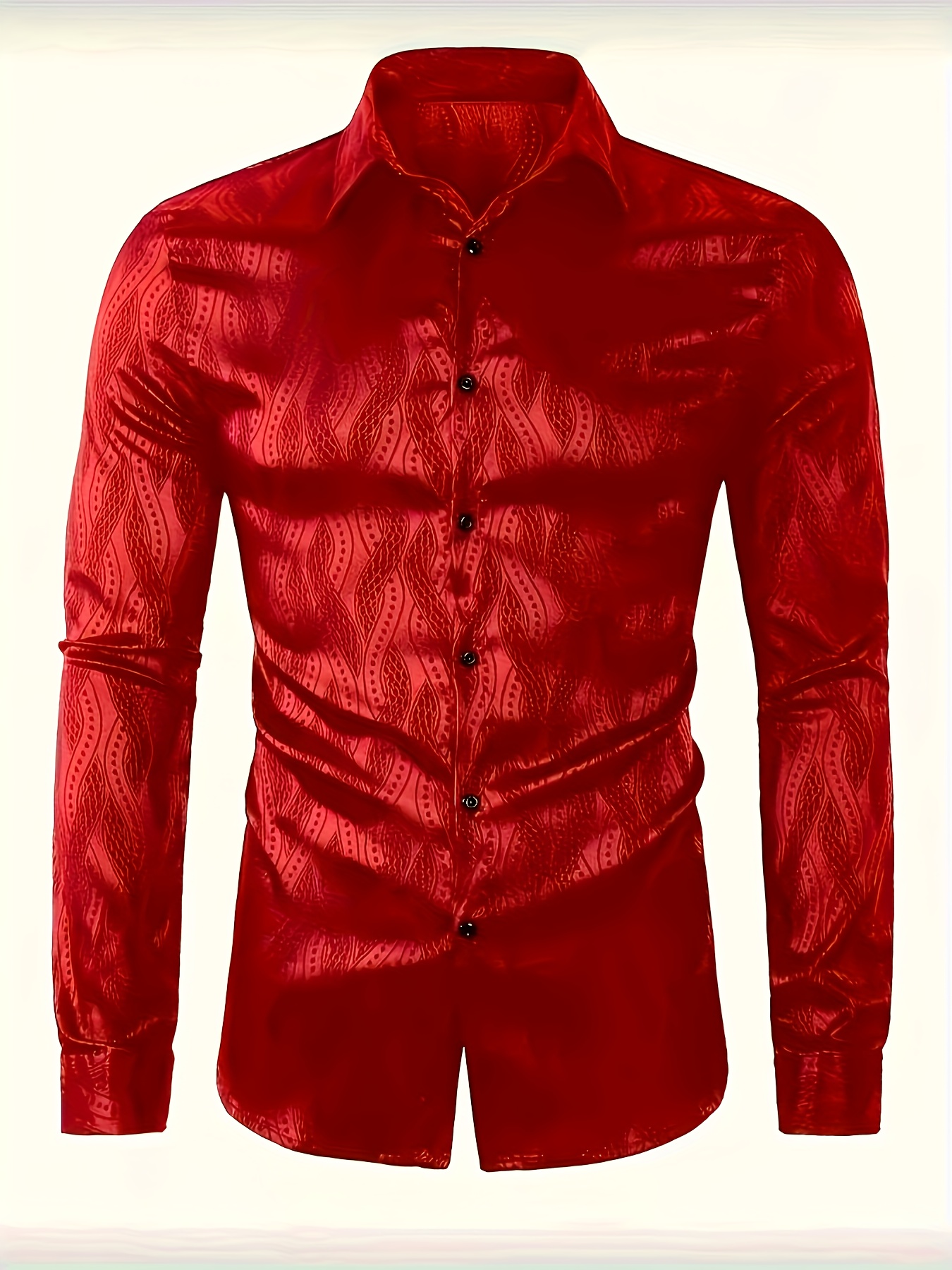 Men'S Red Brocade Shirt - Long Sleeve Slim Fit Business Wedding Party Formal & Casual Shirt with Classic Collar, Non-Stretch Fabric for Office, Events
