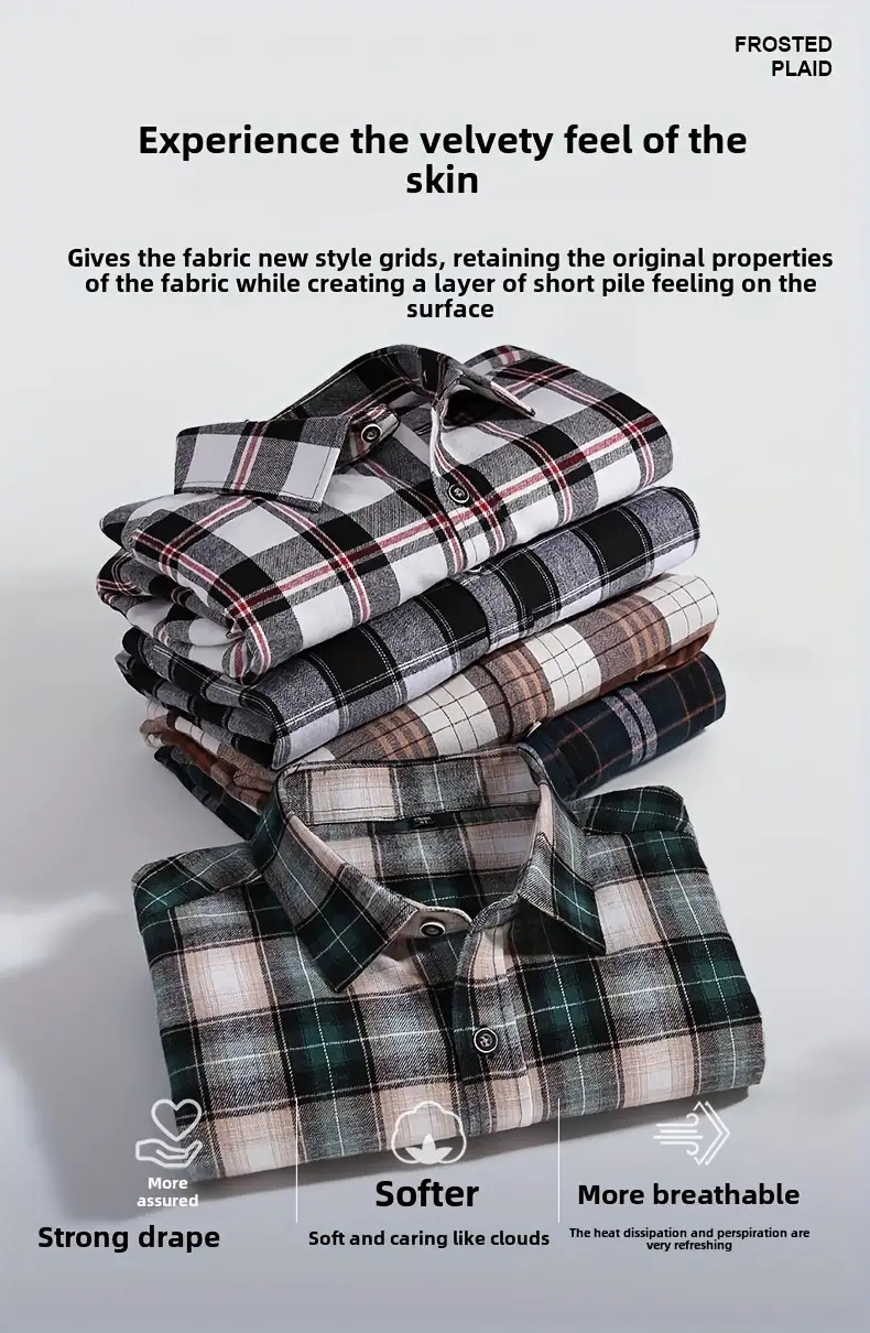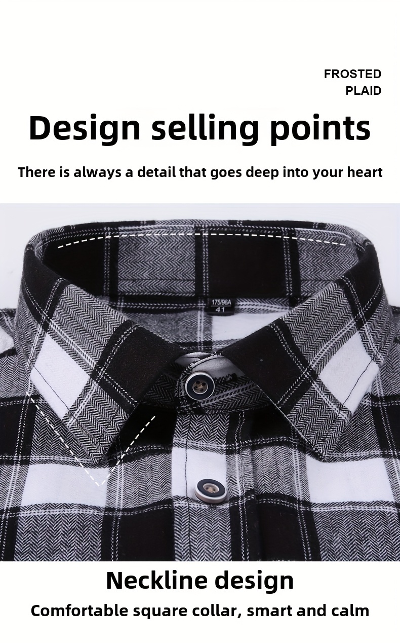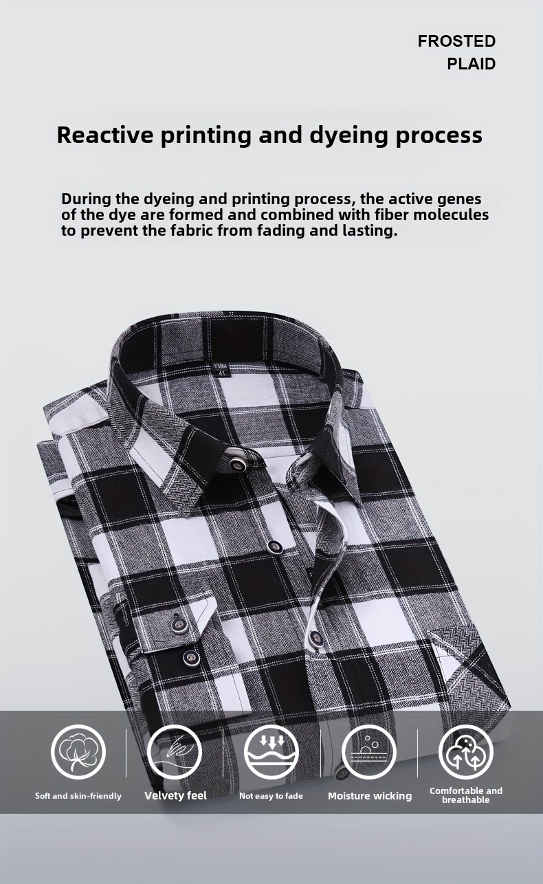 Men'S Wrinkle-Resistant Stretch Long Sleeve Dress Shirt - Business Casual & Formal Button-Up with Chest Pocket, Brown/White Checkered Pattern, Square Collar, Wrinkle-Free Easy Care Fabric for Office, Semi-Formal Events - Spring/Fall Season Shirt for