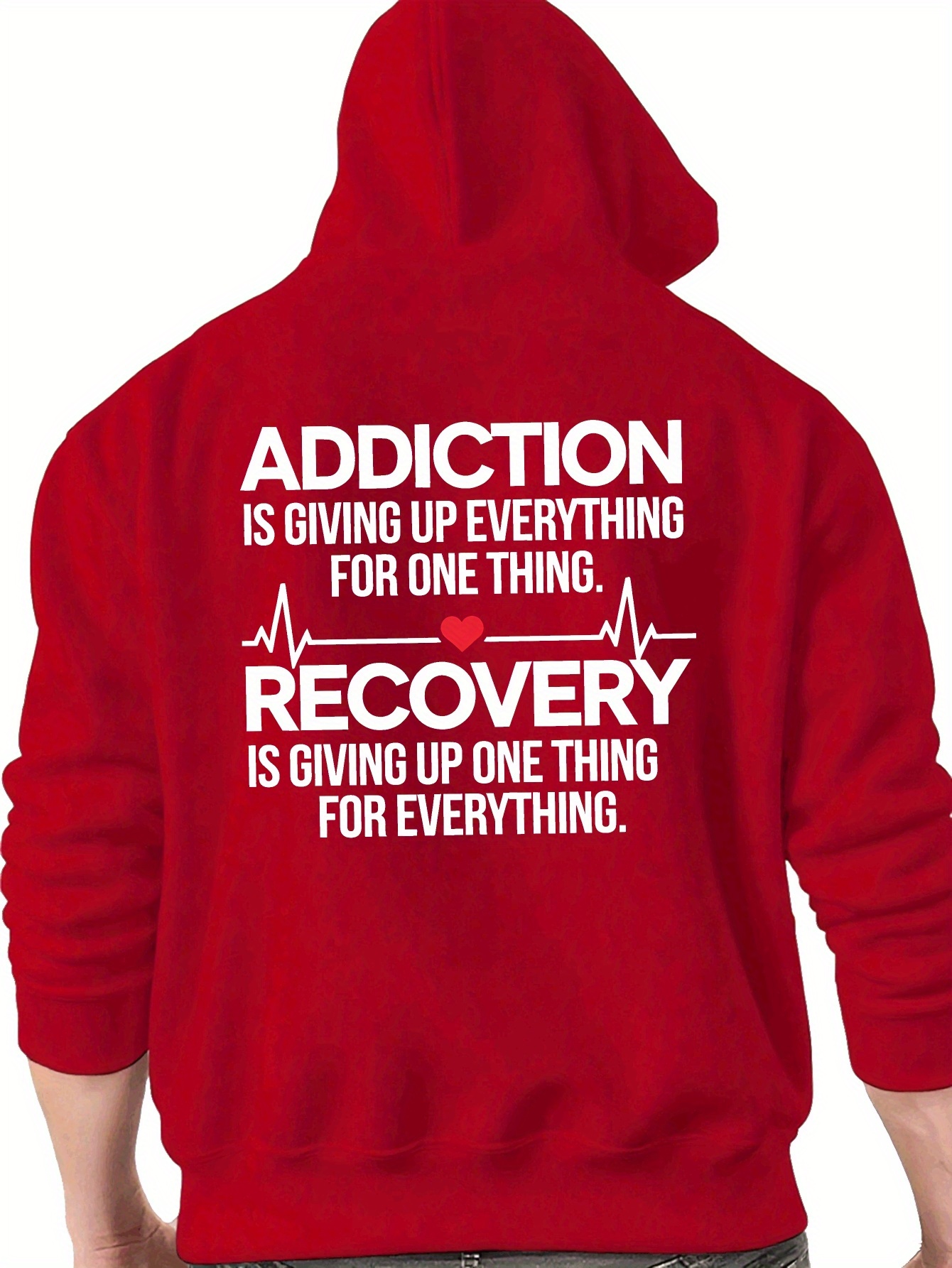 Men'S Hoodie - Back Printed Addiction Recovery Message Hooded Sweatshirt - Dark Grey/Black Graphic Pullover - Long Sleeve Winter Hoodie for Everyday & Formal Wear - Ideal Addiction Support Gift for Men, Casual Streetwear, Comfortable Fit, Durable Fabric, Streetwear Fashion, Trendy Design, Soft Material, Hooded Sweater, Men'S Fashion