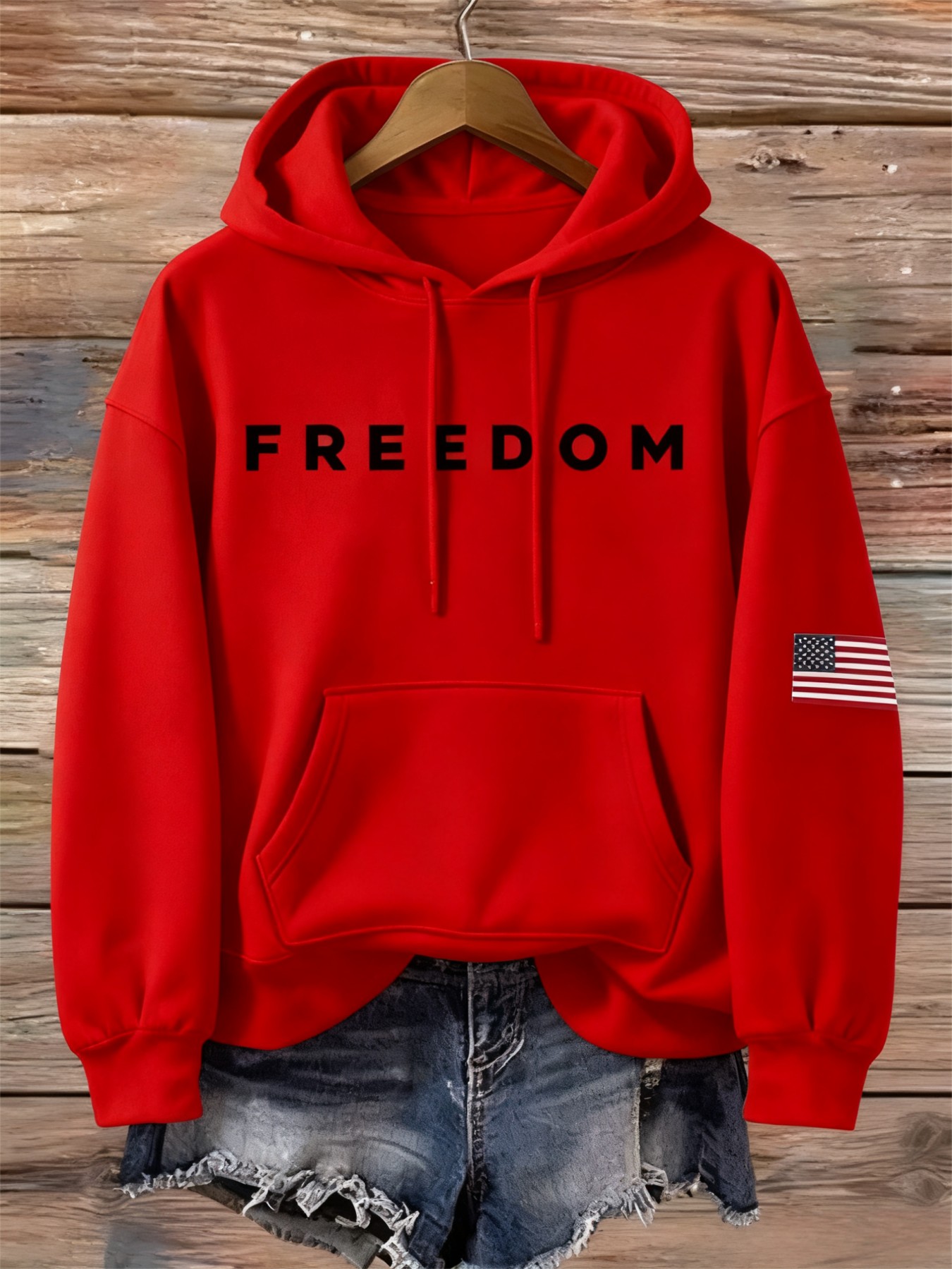Men's Oversized Hooded Sweatshirt with FREEDOM Print & Flag Patch - Heavy-Duty Winter Warmth, Loose Fit Streetwear Pullover, Kangaroo Pocket, Drawstring Hood, Machine Washable Casual Sweater (Locally Shipped)
