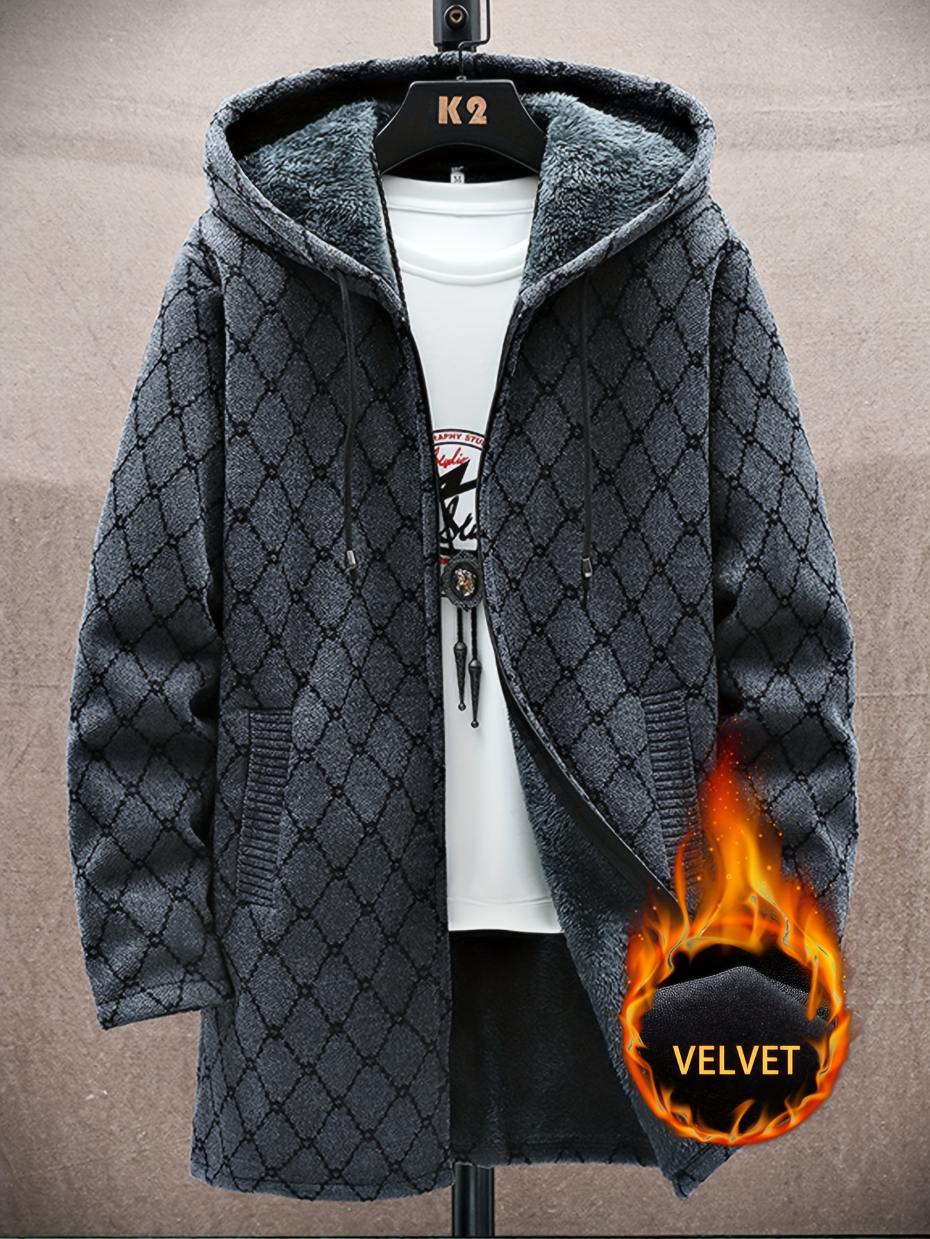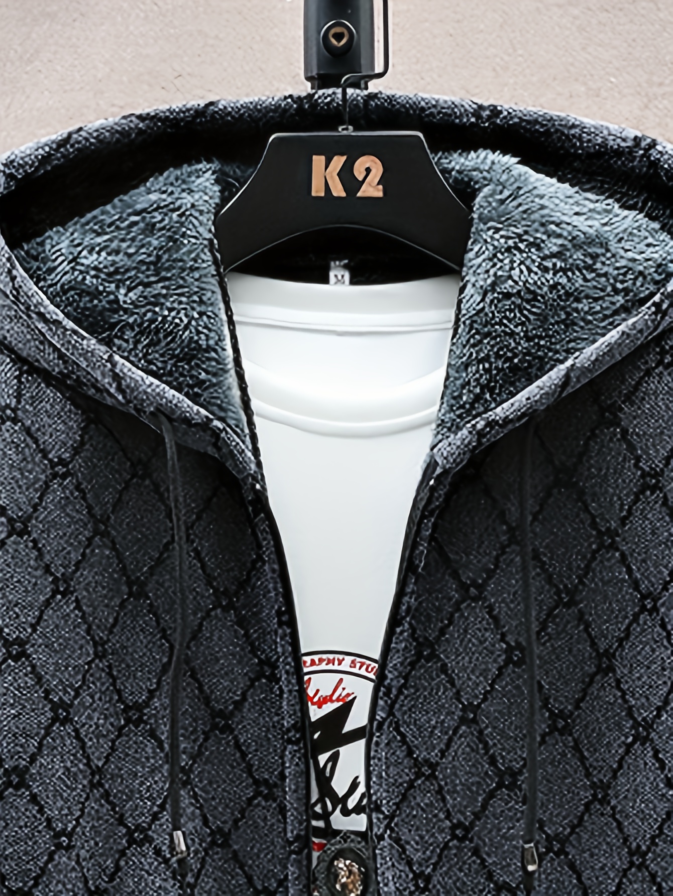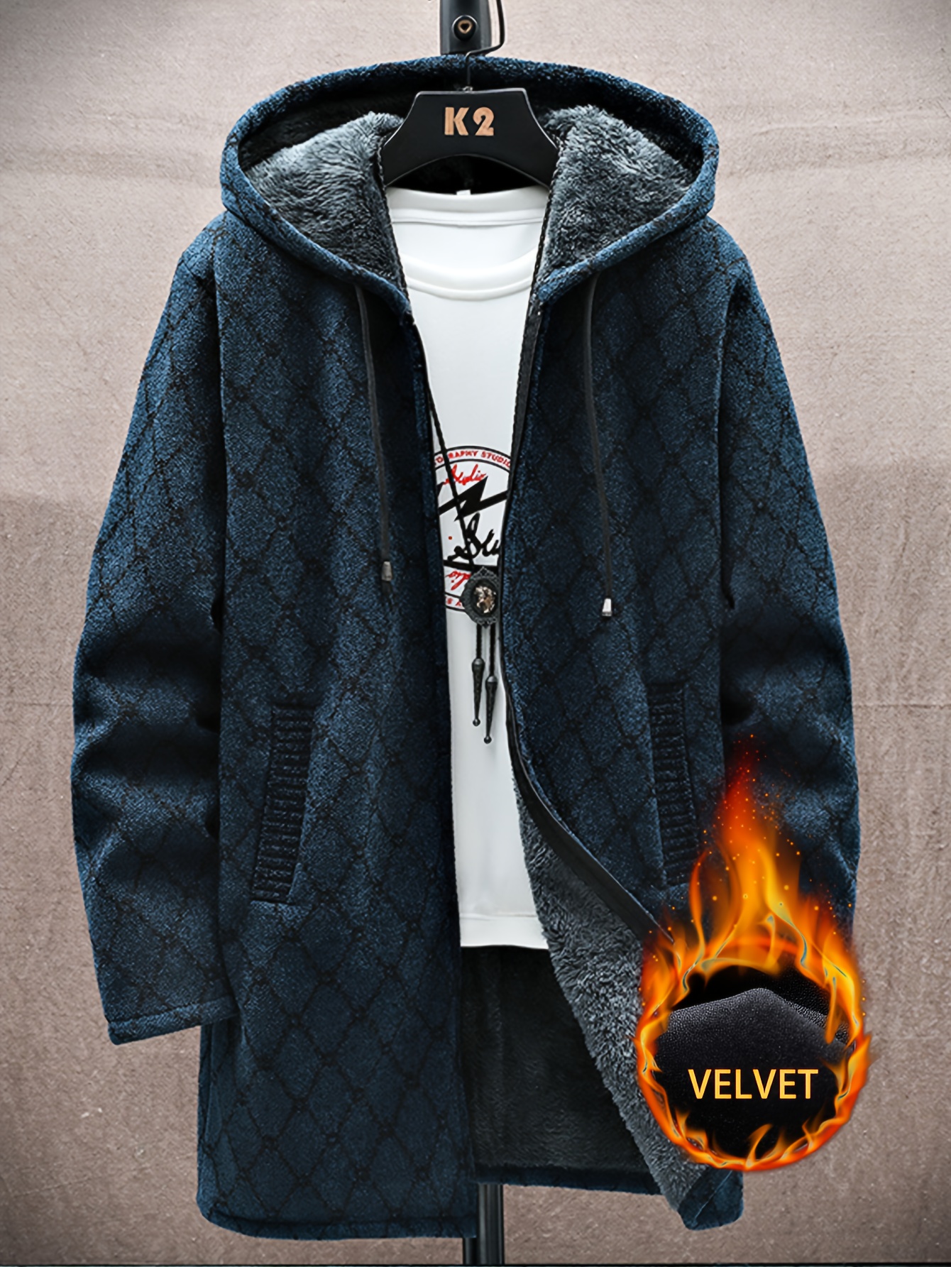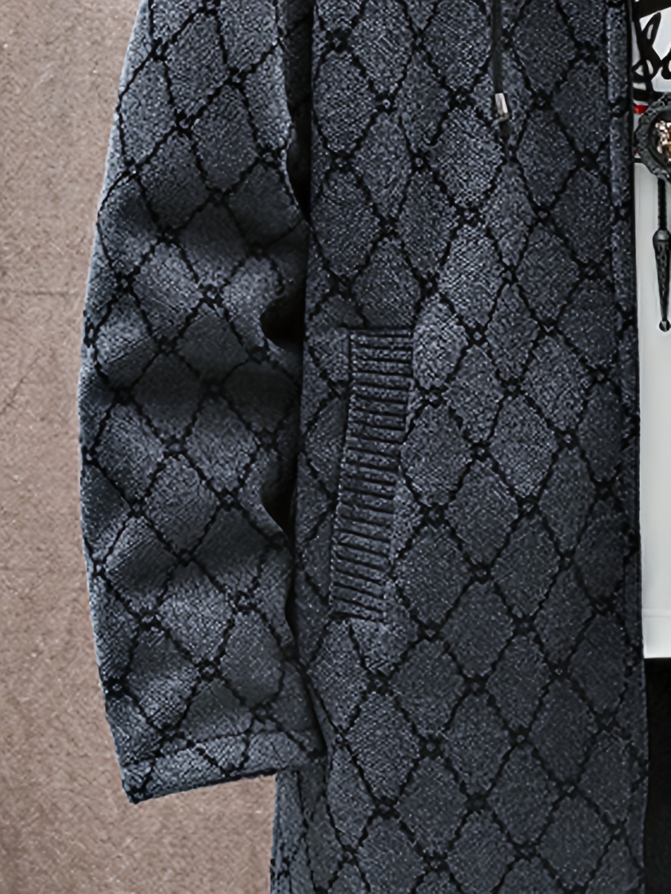 Autumn and winter Men's casual mid to long length jacket with hooded and plush thick warm jacket, fashionable and versatile top, Seasonal Fashion, Winter Outerwear, Long Coat, Stylish Outerwear, Warm Fabric, Men's Hoodie, Outerwear Essential, Men's