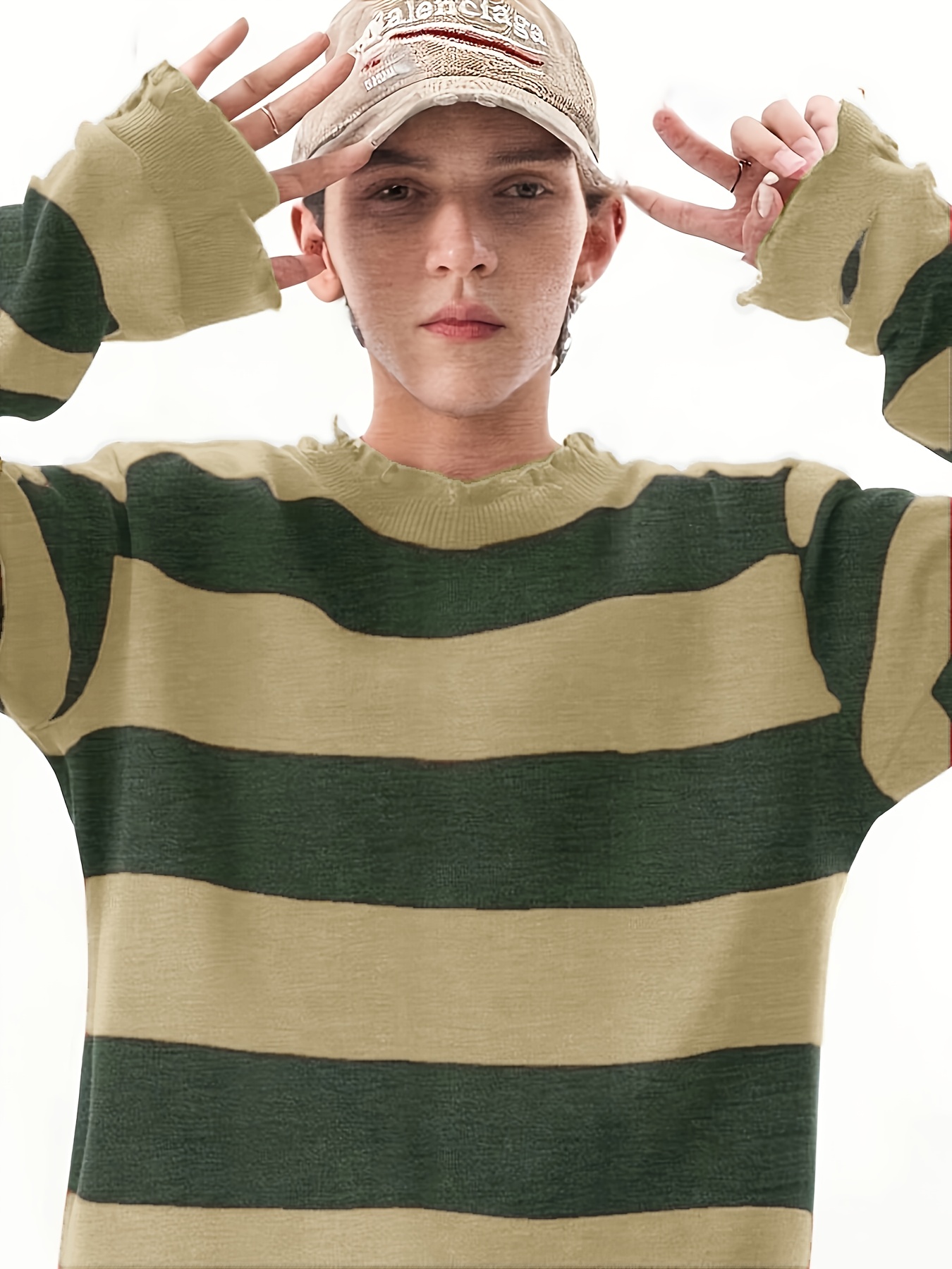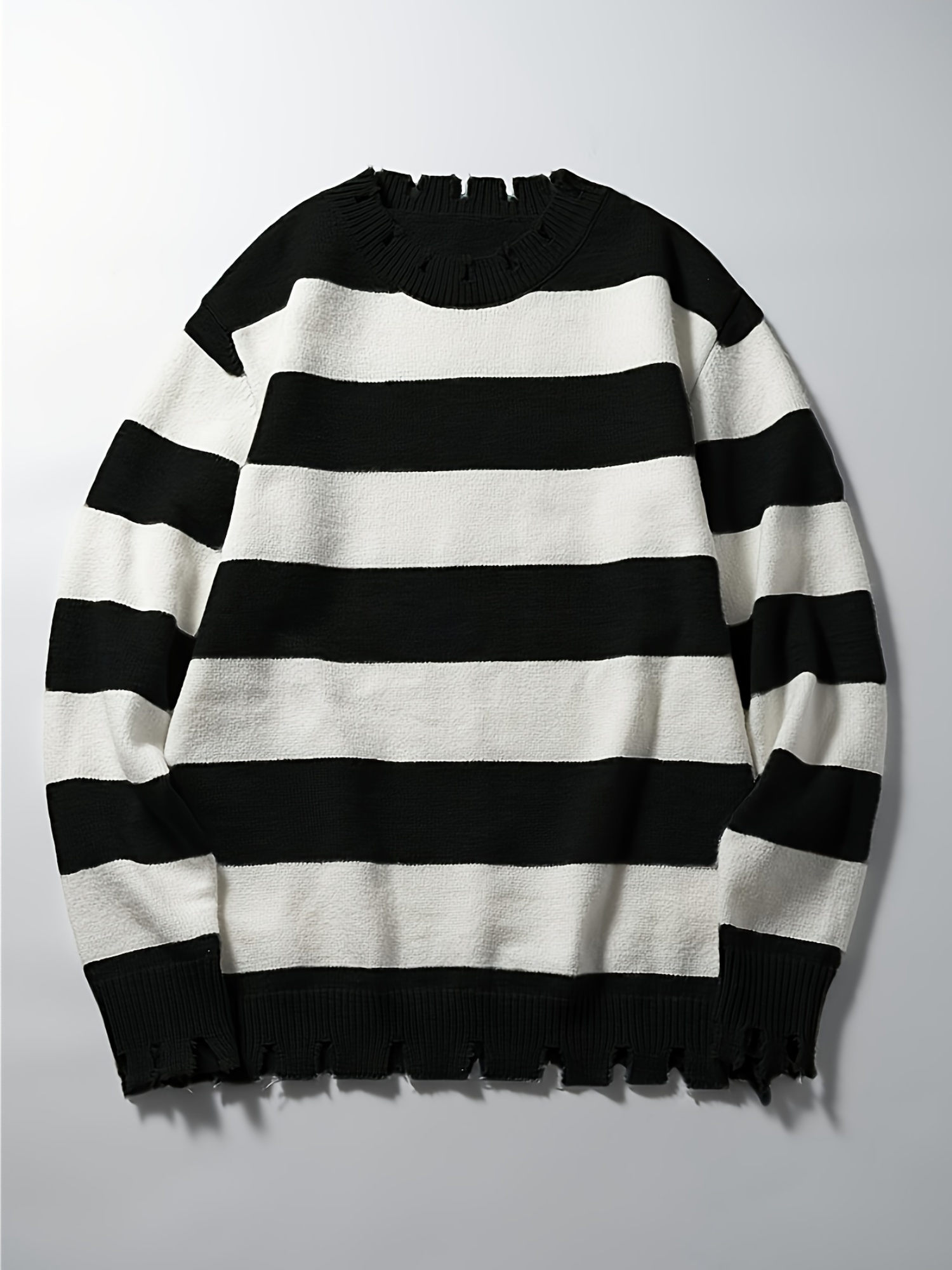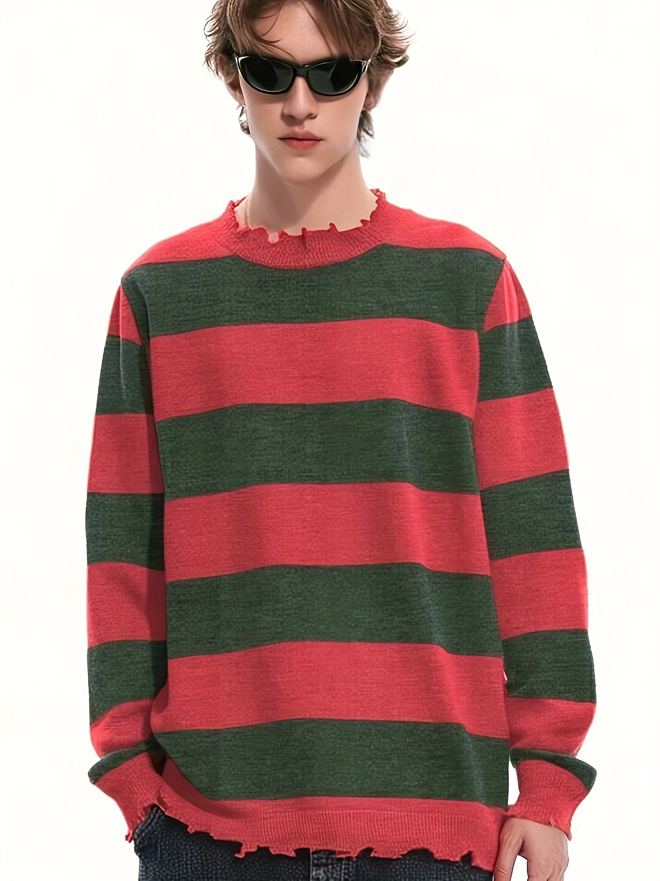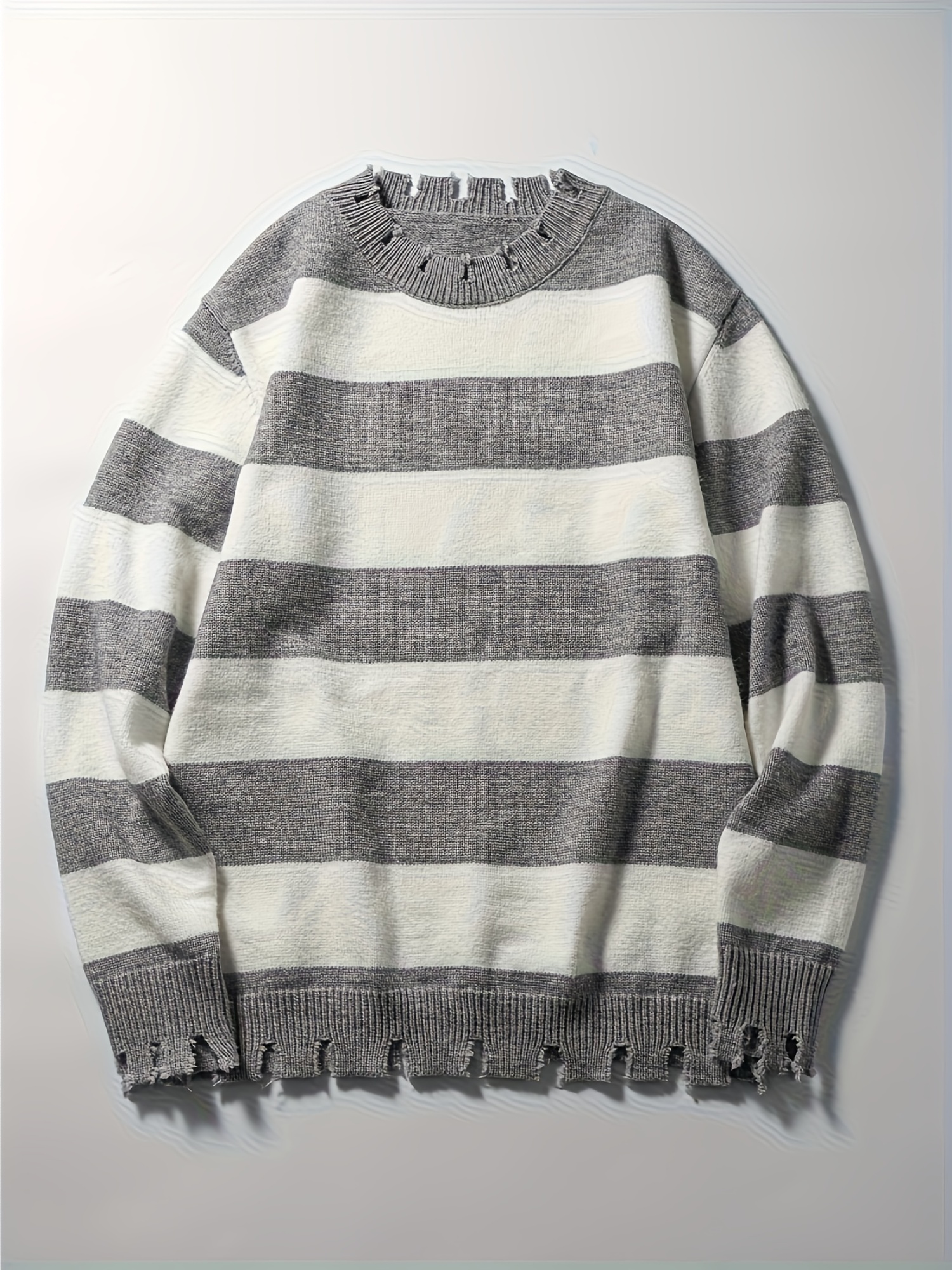 Long-Sleeved Sweatshirt for Autumn And Winter, Featuring a Stylish Checkered Perforated Design with a Unique Distressed Round Neck, Perfect for Keeping Warm for Men., Autumn Clothes Men, Jumpers For Men, Men Sweatshirt, Mens Jumpers, Mens Sweaters, Pullover Men, Sweatshirt Men, Winter Jumper Men