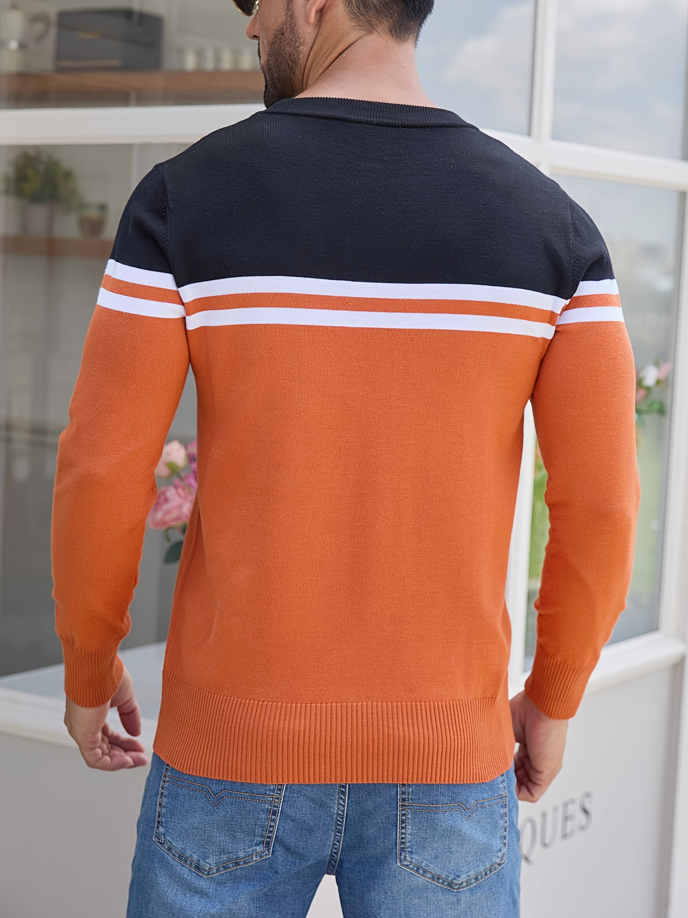 Men'S Thermal Long Sleeve Sweater - Winter Warmth Pullover with Striped Collar, H-Line Silhouette, Soft Stretchy Fabric for Office, Formal, Knit, Winter Sweater For Men, Winter Clothes For Men, Winter Clothes For Women, Winter Clothes For Women Plus