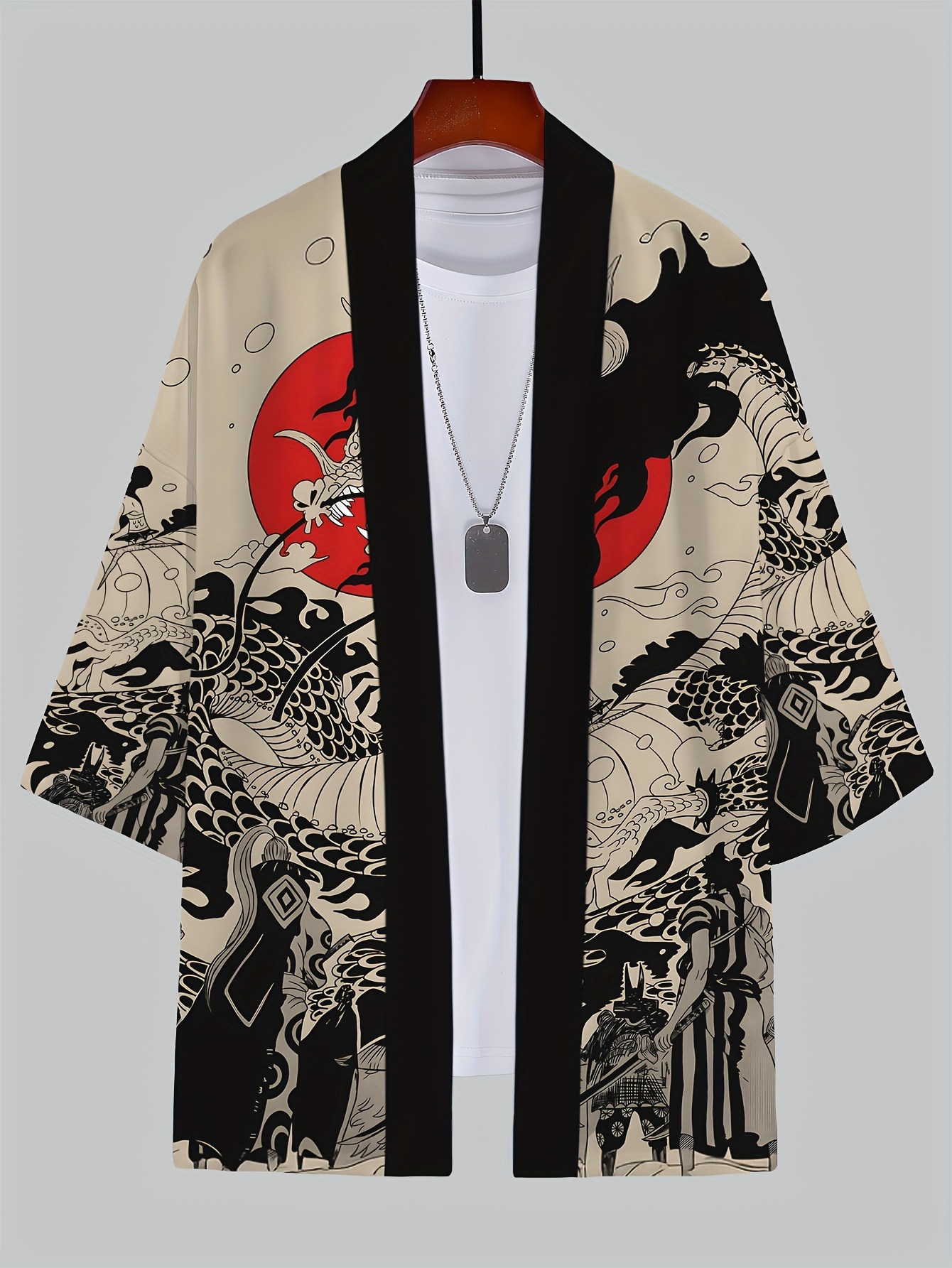 Men's Vintage Dragon Print Kimono Cardigan - Loose Fit, Sun Protection, Polyester, Casual Summer Style, Machine Washable