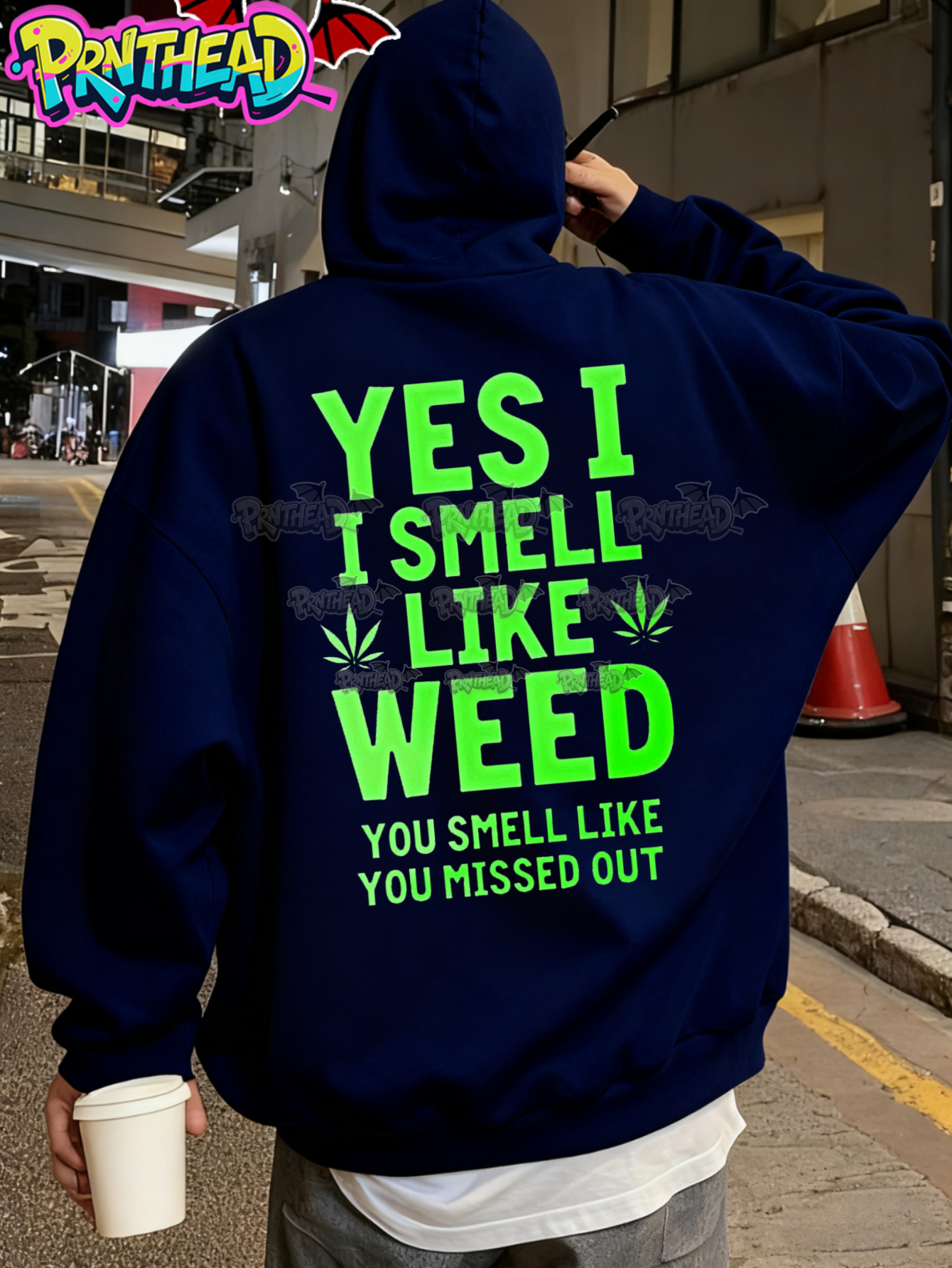 YES I SMELL LIKE WEED YOU SMELL LIKE YOU MISSED OUT Mens Hoodie Sweatshirt Autumn Winter Hooded Sweatshirt Retro Hoodie Navy Blue Unique Personality Fashion Casual Hoodie Male Printed Jacket Streetwear Urban Style City Walk Hangout Party Outfit